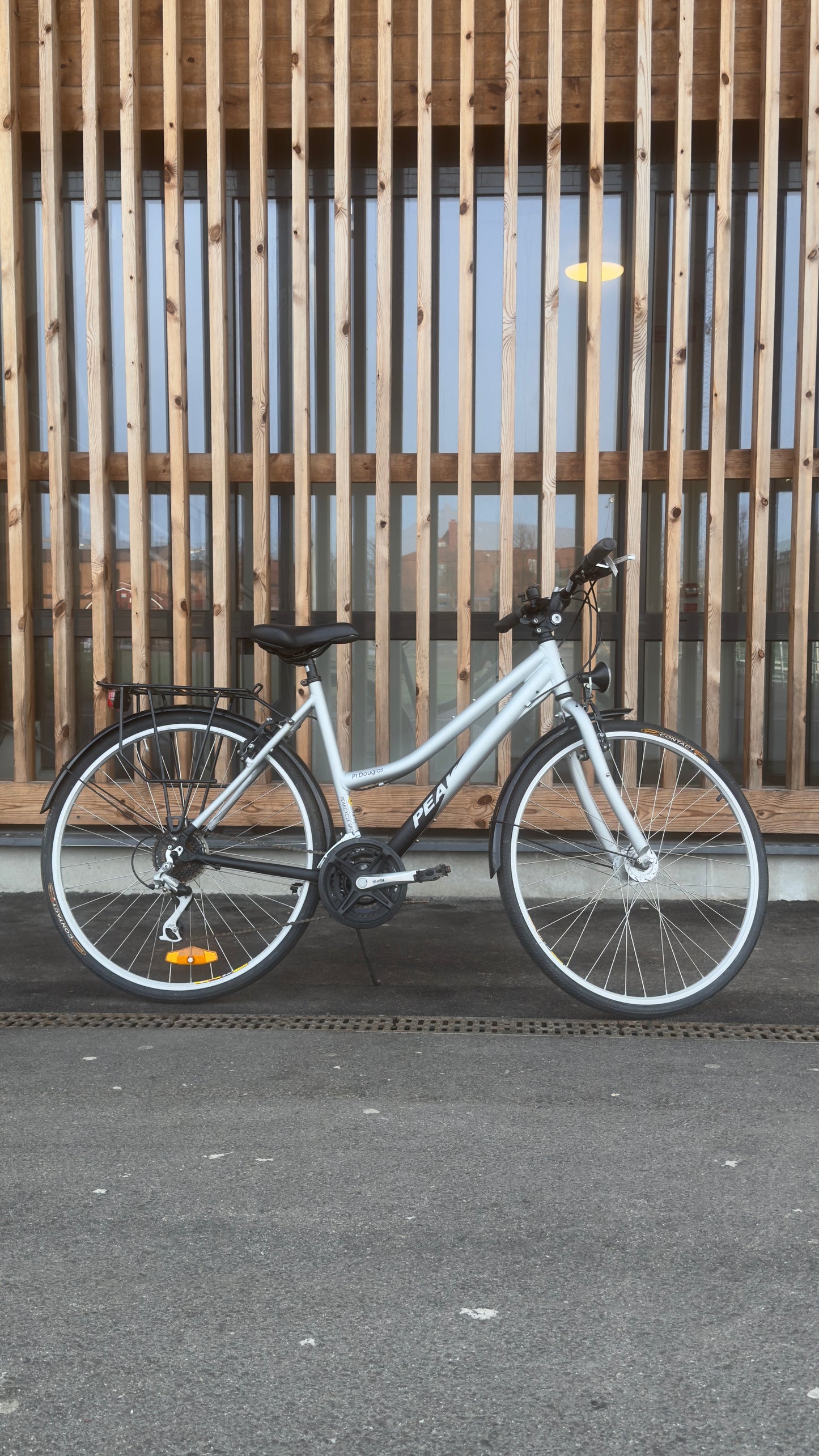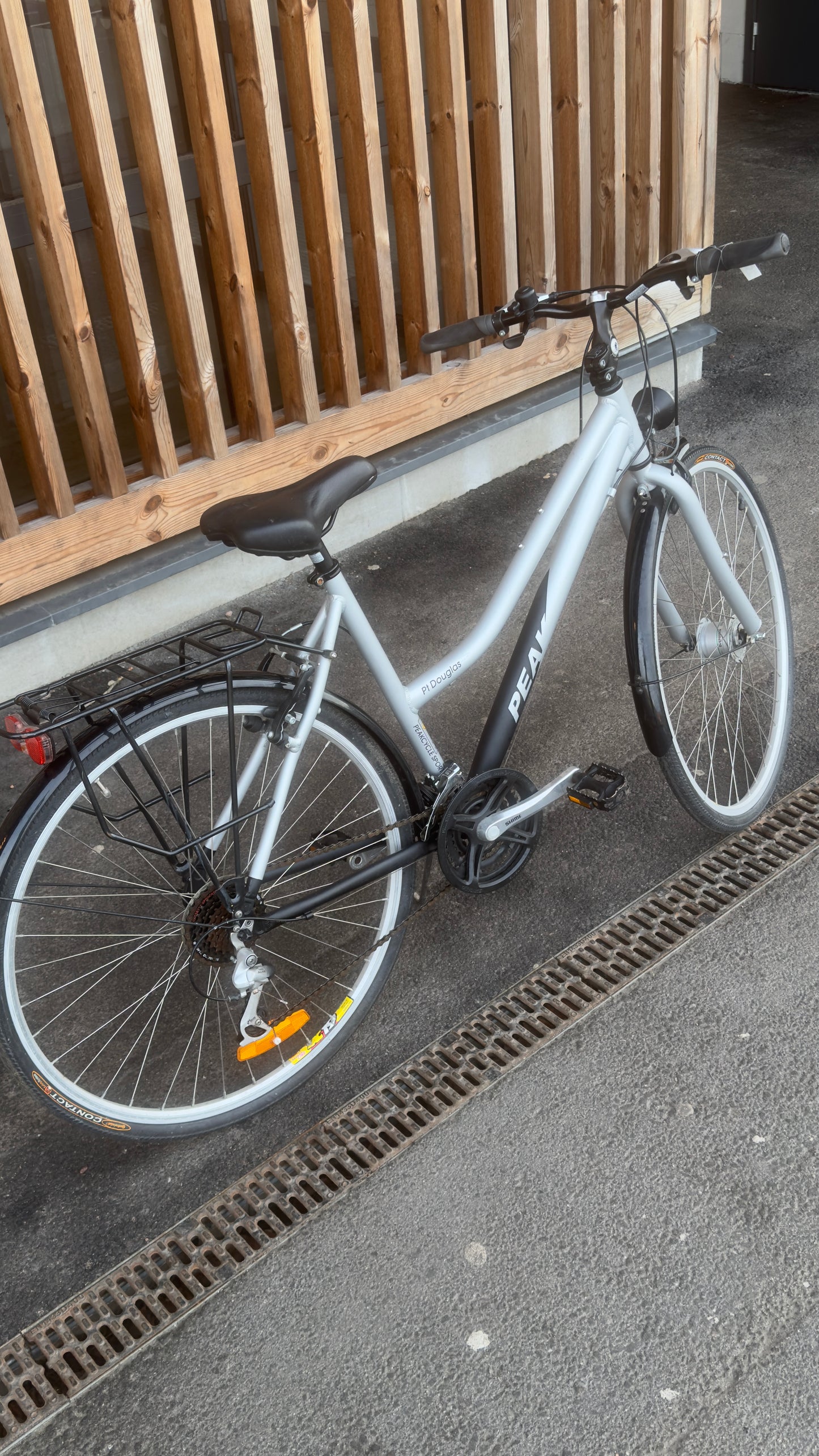 Shimano 3x8, rim brakes front and rear, good condition, reflectors, front hub dynamo with working front light, luggage rack. Available at Heden.